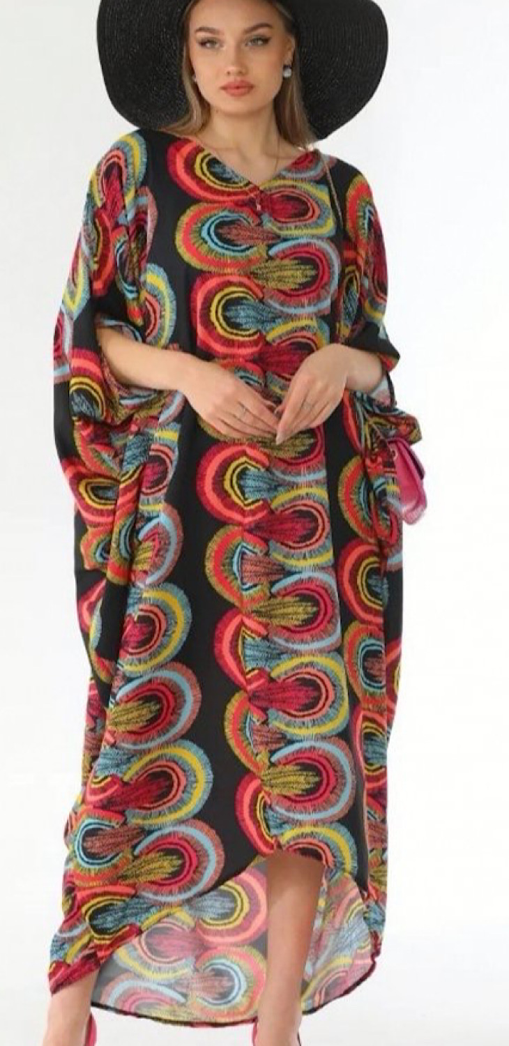 Potrivirea largă și confortabilă a acestei rochii de damă o face ideală pentru o varietate de ocazii, de la plajă până la o zi relaxată în oraș. Designul său fluid, în stil caftan, adaugă și eleganță și confort garderobei tale.